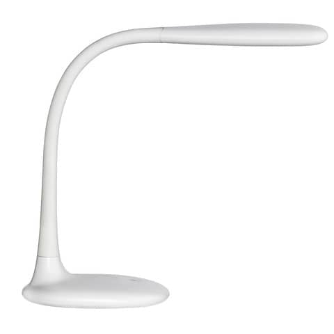 Lampada da tavolo Lucy led Unilux 7,5W. Braccio flessibile e dal design raffinato. garantisce un'ottima diffusione della luce grazie alla forma allungata della testa. dotata di dimmer a sfioramento sulla base per la regolazione dell'intensità della luce (3 posizioni) e la temperatura colore (3 posizioni) che corrispondono alle diverse attività: relax (3200k), lettura (4500k), lavoro (5200k). braccio in metallo con elastomero, testa e base in plastica. led 7,5w integrato. (non sostituibile).