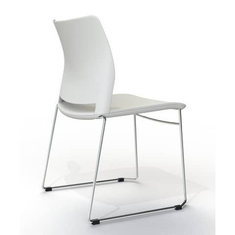 Sedia Alpha da collettività con scocche in PPL facili da pulire e sanificare ed elegantissimo, sottile fusto cromato in filo d'acciaio 11 mm. Dimensioni: Totale HxP: 81x54 cm; Sedile LxP: 50x44 cm; Schienale LxH: 48x36 cm. Colore scocche bianche.