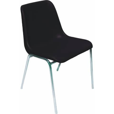 Sedia visitatore Esse ESC con struttura in acciaio cromato tubolare, schienale fisso. Struttura impilabile fino a 10 sedie. Monoscocca in polipropilene di colore nero. Classica seduta d’attesa adatta ad ogni impego.