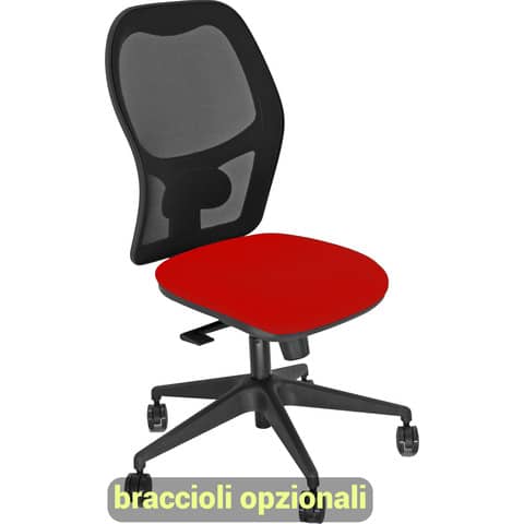 Struttura in acciaio, schienale in Nylon. Rivestimento sedile Eco, 100% Polipropilene 380g m/l, cucito artigianalmente. Colore rosso. Con ruote, braccioli opzionali (codici 110071, 110072, 110074, 110075).