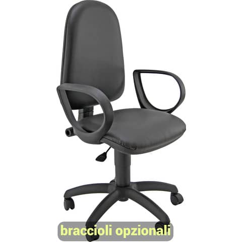 Sedia operativa girevole Jupiter JUSB/SB Eco Smart, schienale regolabile in altezza e profondità, elevazione a gas, meccanismo a contatto permanente. Jupiter, una gamma completissima di sedute operative, con base in vari materiali e struttura nera o grigia.