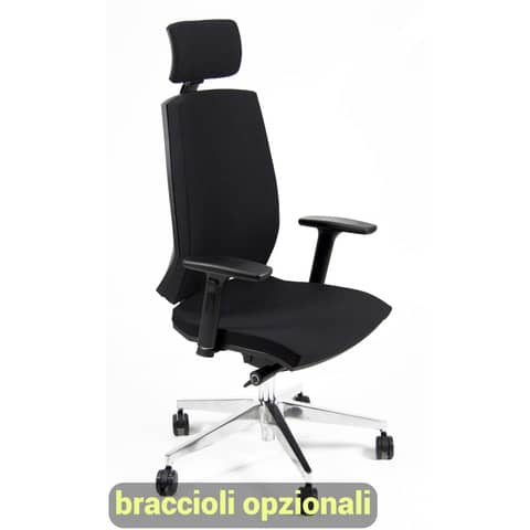 Sedia operativa girevole Larissa LR1SB con poggiatesta, schienale regolabile up-down, supporto lombare regolabile, seduta con elevazione a gas, meccanismo Synchro con 4 blocchi anti shock, meccanismo a contatto permanente. Adatta per un uso intenso. La linea Larissa si compone di una vasta gamma di poltrone operative con diverse finiture sia negli accessori, braccioli e base, che nella livrea cromatica complessiva.