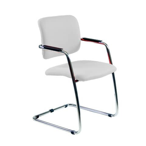 Sedia visitatore Lithium LTLT, schienale fisso, con slitta tubolare cromata e braccioli strutturali, impilabile.