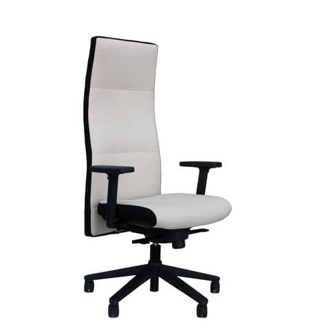 Poltrona direzionale girevole Next, schienale alto con meccanismo a contatto permanente, regolabile in altezza. Seduta con elevazione a gas, meccanismo con 4 blocchi antishock. Struttura in faggio multistrato e base in nylon nero. Una poltrona dirigenziale-presidenziale, di grande altezza e imbottitura di grande comfort.