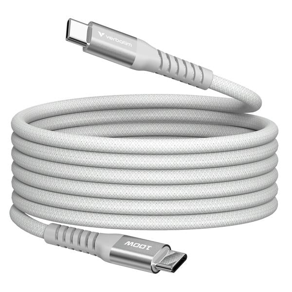 Verbatim cavo magnetico sync ( e charge usb-c to usb-c 100w 120 cm_grigio erogazione di potenza elevata: supporta fino a 100 w di ricarica rapida e 480 mbps di trasferimento dati ampia compatibilita': adatto a una vasta gamma di dispositivi usb-c, dai laptop agli smartphone design magnetico: rimane arrotolato e senza grovigli per un facile utilizzo e stoccaggio costruzione robusta: esterno intrecciato e nucleo in rame spesso per una maggiore durata supporta pd 3.0 e qc 3