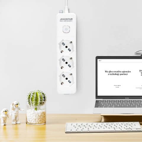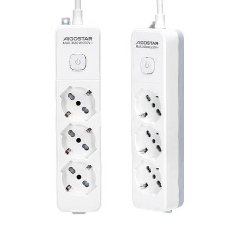 AIGOSTAR - Multipresa con interruttore 16a - cavo 1,5 m - bianco e grigio a 3 vie p40 - 281724