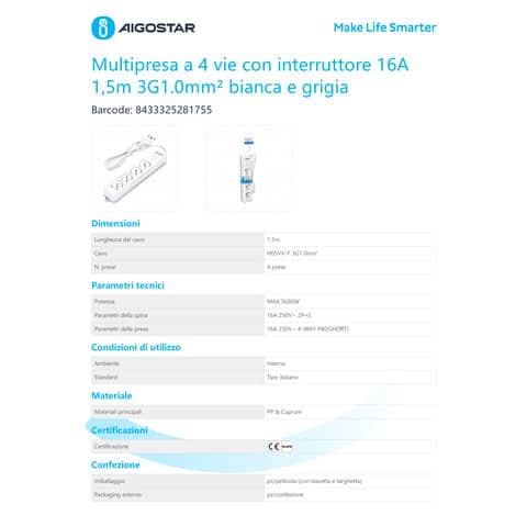 Trovi questo prodotto nella categoria: CAVI - PRESE - CARICABATTERIE - PROLUNGHE