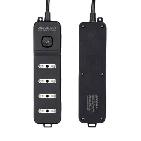 AIGOSTAR - Multipresa bassa a 4 vie p17/p11 con interruttore 16a - cavo 1,5 m nero - 281915