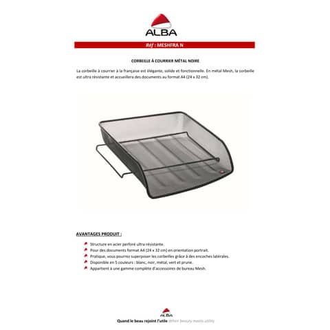 Portacorrispondenza da scrivania coordinabile a tutti gli elementi della linea mesh. realizzata in robusta rete metallica. Apertura sul lato corto. Dimensioni: 27x6,5x34cm.