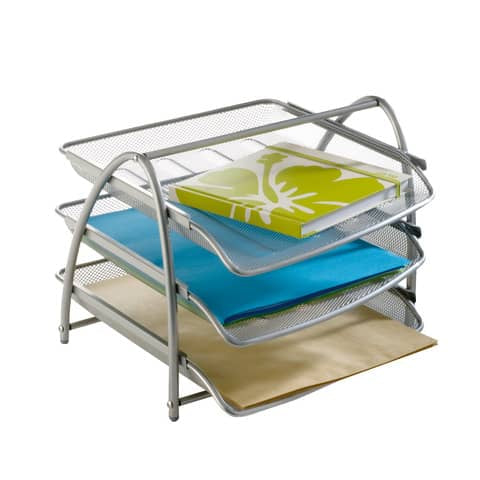 In robusta rete metallica a tre ripiani. Dimensioni: 34x29x34,5cm, apertura lato corto. Puo' contenere documenti formato 32x24cm.