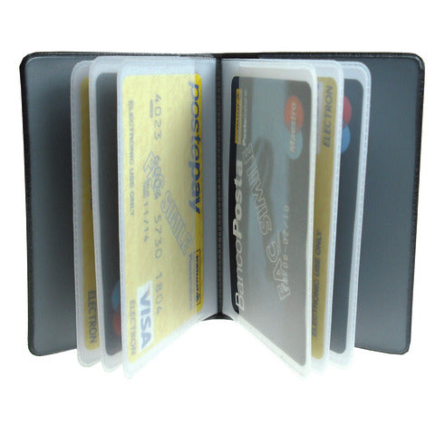 Portacarte a libro Pluricard Smile con 14 scomparti. Tasche interne in PVC antistatico. Colori tenui assortiti.