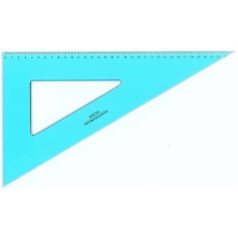 Con smusso, bordo tirachina e bordo interno. Graduazione incisa a caldo dei numeri e dei millimetri per garantire precisione e indelebilità. Materiale termoresistente e massima trasparenza. Lunghezza 35 cm calcolata sul cateto maggiore.