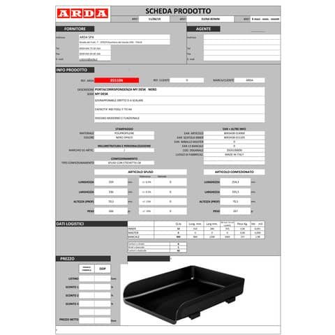 Linea di accessori da scrivania di qualita' e stile. Realizzata in materiale infrangibile con accostamenti di finiture lucide e satinate. Vaschette impilabili in linea o a sbalzo. Adatte a contenere fino al formato 23x32cm. Dimensioni: 33,5x25,4x7cm.