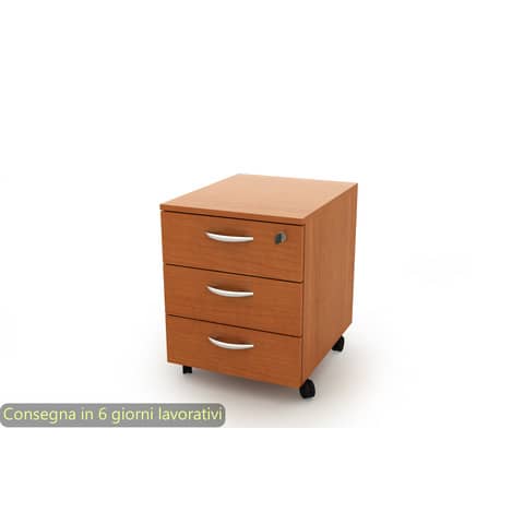 Cassettiera a 3 cassetti su ruote con serratura sul primo cassetto. Ciliegio. Guide metalliche. Dimensioni utili cassetti L.31,8 P.38,3 H.10,9 cm fornita in kit da assemblare. Dimensioni: 41x50xH.52,2 cm. Cassettiera con struttura in melaminico bilaminato sp. 16 mm. Ruote pivotanti, smontate e senza freno.