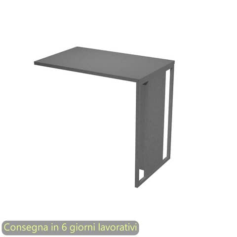 Allungo reversibile destra/sinistra per scrivanie Blade con gamba in metallo antracite opaco e piano antracite laguna. Piani dei tavoli sp.22 con bordi abs sp.2 mm arrotondati, con assenza di spigoli vivi. Dimensione: 80x50xH.74,4 cm. Produzione interna Artexport della parte in legno certificata Iso 9001. Certificazioni FSC e PEFC. Imballi totalmente in cartone per un facile riciclo, a basso impatto ambientale.