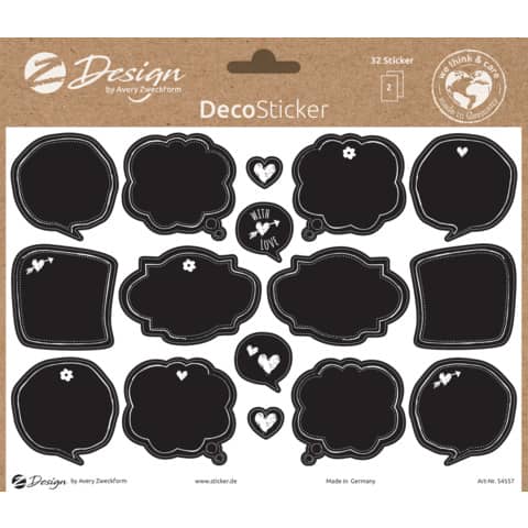 Trend Sticker in 2 fogli formato A5. Edizione: etichette effetto lavagna. Realizzati in carta FSC.