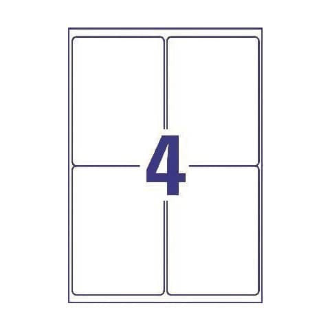 Etichette bianche in carta QuickDRY™ per buste e pacchi, adatte a stampanti Inkjet. Devi spedire tantissimi pacchi ed hai poco tempo? Scegli le etichette per indirizzi per buste e pacchi di Avery, sono realizzate con una speciale carta coprente che ti permette di coprire scritte ed etichette precedentemente applicate sui cartoni. Puoi stamparle velocemente e facilmente con il software gratuito di Avery. Inoltre grazie alla tecnologia Quick Peel™ l'etichettatura è ancora più veloce, basta tirare il foglio lungo la micro perforazione liberando così un lato dell'etichetta che si stacca più facilmente. Ideali non solo per etichettare pacchi ma anche per buste grandi, tubi e scatole. Utilissime per spedire piccoli pacchi, buste per corrispondenza, inviti, distribuire un mailing. Formato 99,1x139 mm, 4 etichette per foglio, confezione da 25 fogli, 100 etichette per confezione. L’inchiostro asciuga rapidamente, stampa perfetta senza sbavature. Grazie alla finitura QuickDRY™ ottieni sempre stampe impeccabili senza sbavature di inchiostro. Perfette per chi vuole ottenere stampe dai colori vividi. Adesivo permanente, aderiscono perfettamente sulle superfici. Etichette realizzate con carta certificata FSC® proveniente da foreste gestite in modo responsabile. Crea & stampa online è il software gratuito di Avery che ti permette di personalizzare completamente le tue etichette, puoi scegliere tra un modello vuoto o modelli pre-disegnati. Tutte le etichette Avery sono presenti in Word.