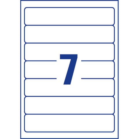 Etichette bianche in carta Ultragrip™ specifiche per raccoglitori, adatte a stampanti Laser. Cercare documenti può diventare una vera perdita di tempo. Ma puoi evitarla e trovare i tuoi documenti rapidamente mantenendo in ordine il tuo archivio, con raccoglitori ben etichettati. Sceglie le etichette per raccoglitori di Avery facili da stampare e personalizzare grazie al software e modelli gratuiti di Avery. Inoltre grazie alla finitura coprente ti permettono di riutilizzare vecchi raccoglitori e cartelline. Adatte a diversi formati di raccoglitori. Formato 38x192 mm, 7 etichette per foglio, confezione da 25 fogli, 175 etichette complessive per confezione, adatte a raccoglitori dorso sottile (4 cm). Realizzate con una speciale carta coprente BlockOUT® che ti consente di coprire scritte ed etichette precedentemente applicate su raccoglitori o cartelline. Grazie alla tecnologia Ultragrip™ ottieni stampe perfettamente allineate, senza inceppamenti e senza sprechi. Adesivo permanente, aderiscono tenacemente al dorso dei raccoglitori. Realizzate con carta certificata FSC® proveniente da foreste gestite in modo responsabile.