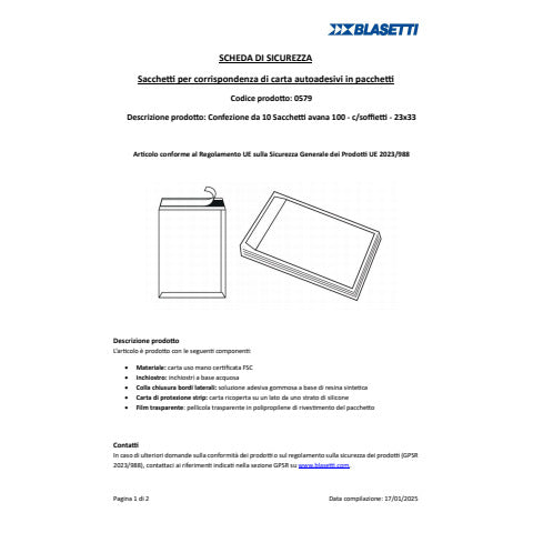 - Formato della busta: 230x330 mm