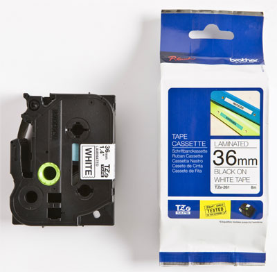 Questo è un nastro originale Brother TZE261 (TZ-261) colore nero su bianco, che può essere installato sulle stampanti sotto riportate.