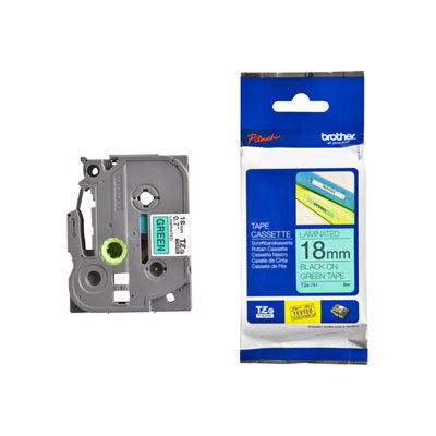 Questo è un nastro originale Brother TZE741 (TZ-741) colore nero su verde, che può essere installato sulle stampanti sotto riportate.