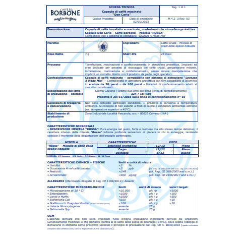 Capsule Don Carlo 100 pz qualità Rosso. Capsule compatibili con macchine a marchio Lavazza®* A Modo Mio®*. Dal gusto forte e deciso, è il caffè ideale per darsi una scossa di vitalità. Miscela 20% Arabica 80 % Robusta