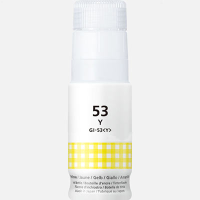 Questa è una ricarica inchiostro alternativa, compatibile di alta qualità, colore giallo, che può essere utilizzata al posto della ricarica inchiostro Canon 4690C001 (GI-53Y) sulle stampanti sotto riportate.
