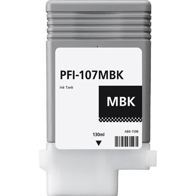 Questa è una cartuccia alternativa, compatibile di alta qualità, colore nero opaco, che può essere utilizzata al posto della cartuccia Canon 6704B001 (PFI-107MBK) sulle stampanti sotto riportate.