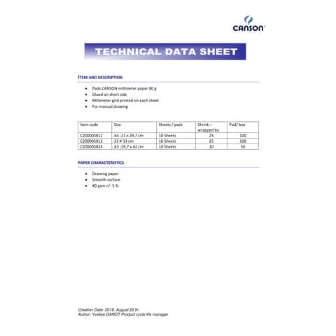- Altre caratteristiche: opaca bianca senza grana con tratto arancio ogni mm e tratto forte ogni 5 cm