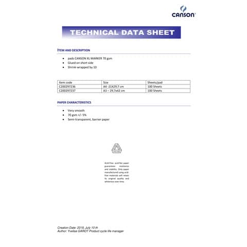 - Altre caratteristiche: carta semi trasparente resistente all'acqua e alla penetrazione dell'inchiostro. Perfetta per layout e storyboarding. Colore extra bianco, eccellente resa. Per pennarelli e marcatori.