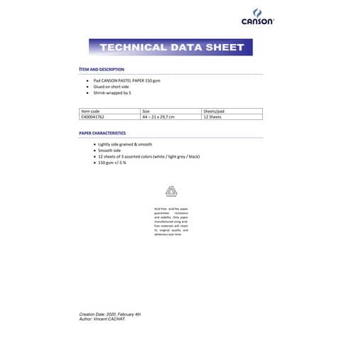 - Altre caratteristiche: carta ad elevata grammatura per pastello. Fogli in 3 colori assortiti, senza acidi e senza azzurranti ottici. Un lato a grana fine e un lato a grana ruvida. Facili correzioni e cancellature ripetute