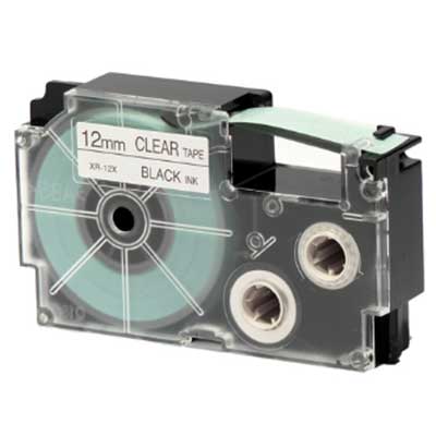 Questo è un nastro originale Casio XR12X (XR-12X1-W-DJ) colore nero su trasparente, che può essere installato sulle stampanti sotto riportate.