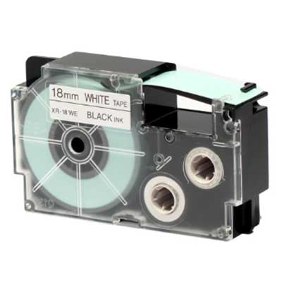 Questo è un nastro originale Casio XR18WE1 (XR-18WE1-W-DJ) colore nero su bianco, che può essere installato sulle stampanti sotto riportate.