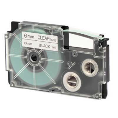 Questo è un nastro originale Casio XR6X (XR-6X1-W-DJ) colore nero su trasparente, che può essere installato sulle stampanti sotto riportate.