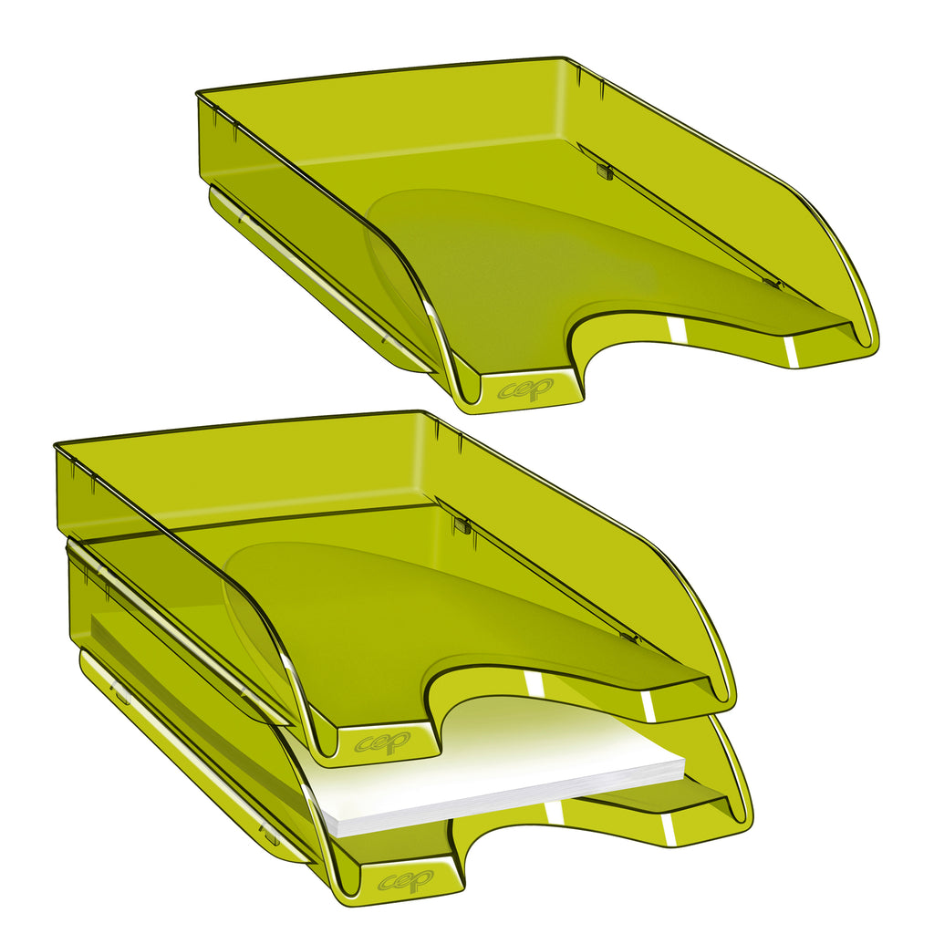 Vaschetta portacorrispondenza che puo' contenere documenti di dimensioni fino a 24 x 32 cm. Molto pratica, l'ampia apertura frontale consente di rimuovere il contenuto molto facilmente. Impilabile verticalmente o a scalare. Realizzata in robusto polistirere antiurto, 100% riciclabile. Linee dinamiche ed eleganti, sottolineate da un materiale con finitura opaca a contrasto su fondo lucido. Dimensioni: 348 x 257 h 66 mm. Colore verde.
