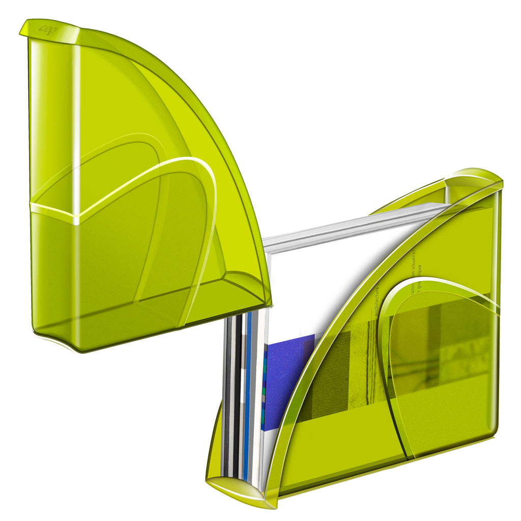 Portariviste dalle linee dinamiche ed eleganti, consente di archiviare tutti i documenti fino alla dimensione 24 x 32 cm, verticalmente o orizzontalmente. L'impugnatura offre un'eccellente presa e il bordo di contenimento di soli 2 cm facilita la presa o il recupero dei documenti. Realizzato in polistirene antiurto, 100% riciclabile. Dimensioni: 27 x 8,5 x h 31 cm. Colore verde.