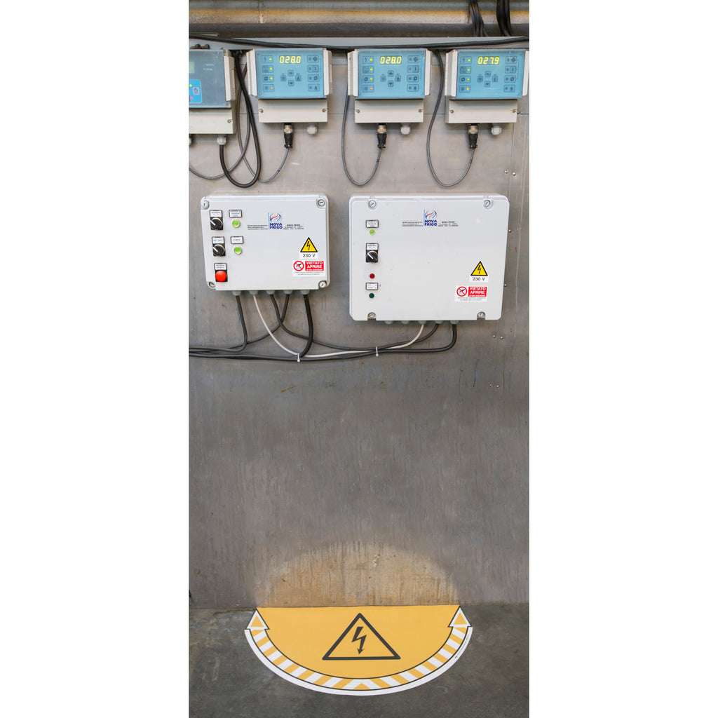 Stickers segnalatori conformi alle norme iso 7010 che permettono di segnalare il suolo in maniera molto visibile per: consentire l'accesso rapido ai dispositivi di sicurezza. Garantire l'accesso alle uscite di sicurezza. Segnalare le zone di rischio elettrico.antiscivolo, antiriflesso, non infiammabile, perfettamente comprensibile poiche' riporta la grafica dei pittogrammi internazionali secondo le norme iso 7010. Resistente e facile da posizionale, adatto a temperature -20 /+60 . Formato:70x35cm (sp.0,2mm