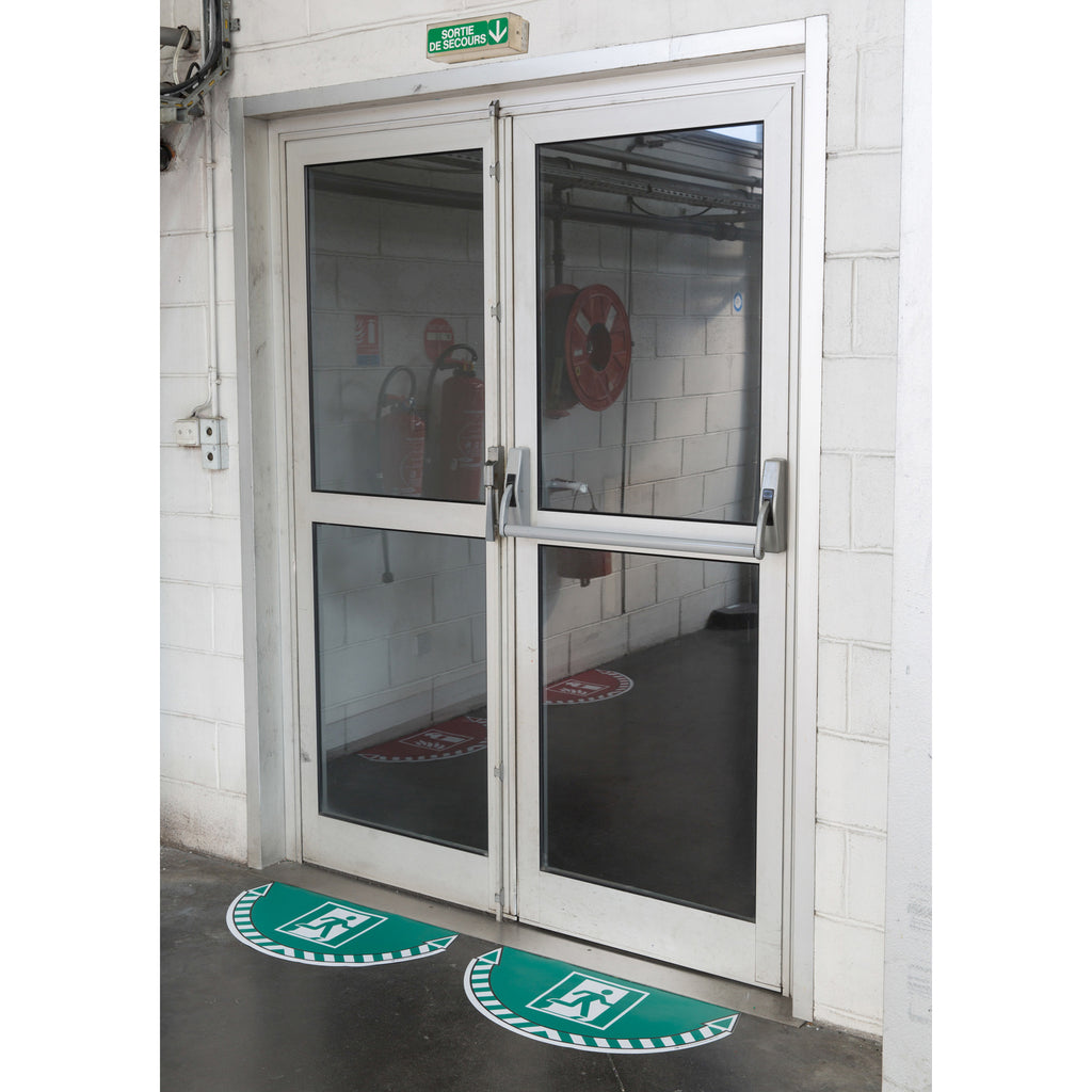 Stickers segnalatori conformi alle norme iso 7010 che permettono di segnalare il suolo in maniera molto visibile per: consentire l'accesso rapido ai dispositivi di sicurezza. Garantire l'accesso alle uscite di sicurezza. Segnalare le zone di rischio elettrico.antiscivolo, antiriflesso, non infiammabile, perfettamente comprensibile poiche' riporta la grafica dei pittogrammi internazionali secondo le norme iso 7010. Resistente e facile da posizionale, adatto a temperature -20 /+60 . Formato:70x35cm (sp.0,2mm