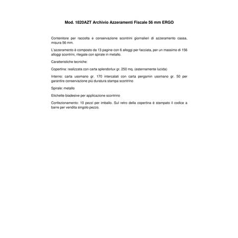 - Descrizione prodotto: cartellina azzeramenti giornalieri