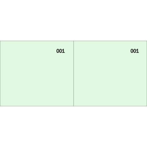 Scontrino a 2 sezioni verde, blocco di 100 copie, 2 scontrini per foglio, prenumerati. Formato 5,8x13 cm.
