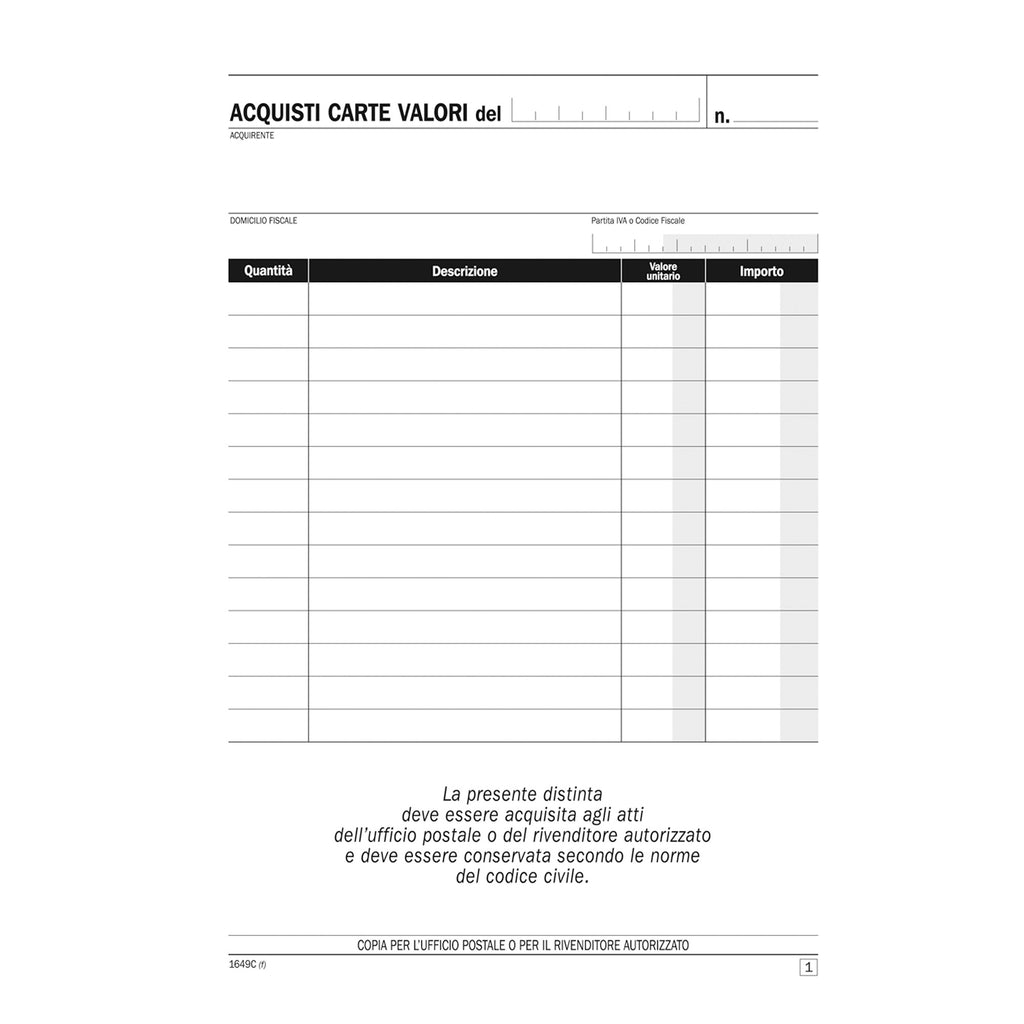 Blocco distinta acquisto carte valori 50/50copie autor. 21,5x14,8cm du1649c0000