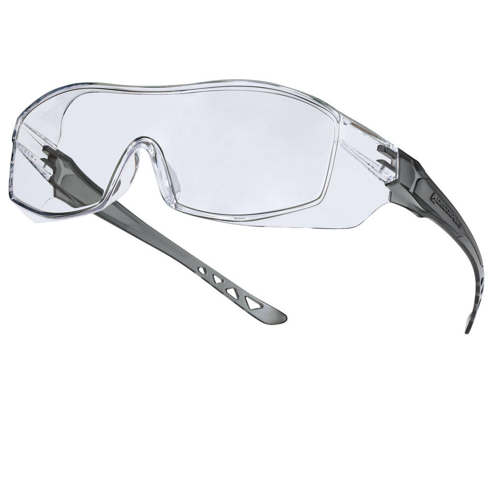 Occhiali policarbonato monoblocco. Protezioni laterali. Nasello policarbonato integrato. Stanghette policarbonato morbide. Adatte per tutti i tipi di occhiali prescritti. Categoria dpi: 2. Certificazione ce. Conformita' alle norme en166:2001 e en170:2002.