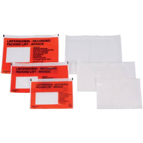 Busta autoadesiva trasparente portadocumenti. Formato: 240 x 110 mm. Dotata di apertura per l'inserimento dei documenti sul lato da 240 mm. Confezione da 250 buste.