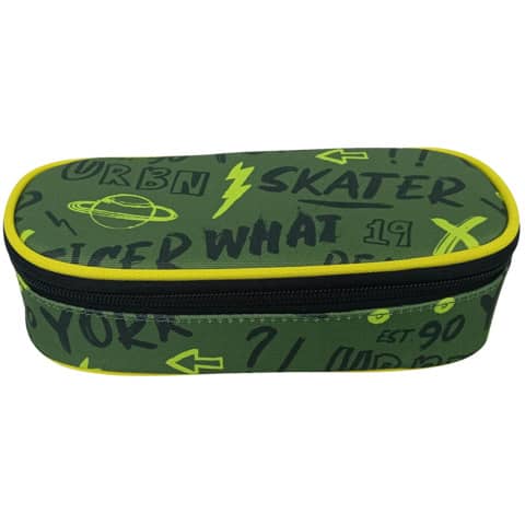 DONAU - Astuccio ovalino small con cerniera 21x5,5x10,5 cm - motivo new york verde - 322131085