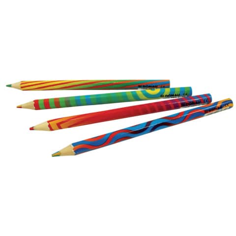 Matire colorate arcobaleno con testa a immersione multicolore(diversi colori di mina). Matita colorata esagonale jumbo. Lunghezza: 17,5 cm. N°4 motivi a matita colorata. Confezione da 36 pezzi.