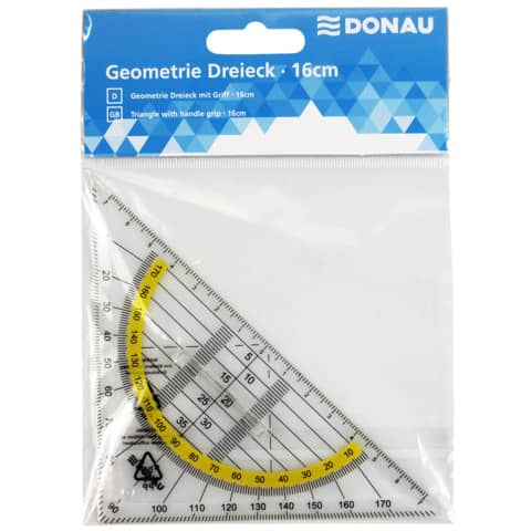 Squadra con goniometro 16 cm con impugnatura, 45°, trasparente.