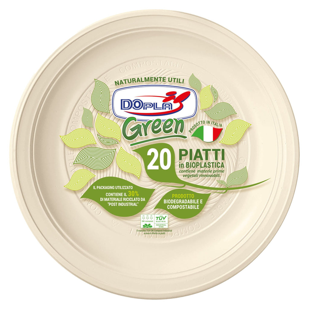 20 piatti piani d220mm bio mater-bi dopla green art. 40033
