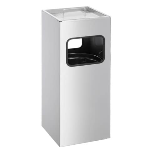 - Altre caratteristiche: verniciato con polveri epoxy-poliestere antigraffio. Ideale per le zone fumatori in aree interne o aree esterne protette dalle intemperie. Dotato di contenitore interno che facilità lo smaltimento dei rifiuti e di una griglia con maniglia utile per rimuovere dalla sabbia i residui di sigaretta evitando il contatto con le mani. Le aperture laterali del cestino sono rivestite di un bordo protettivo che evita il contatto delle mani con il metallo vivo, inoltre la base è dotata di quattro piedini antiscivolo. Include un sacchetto di sabbia da 1,5 kg. Capacità posacenere 2 lt - Capacità cestino 17 lt