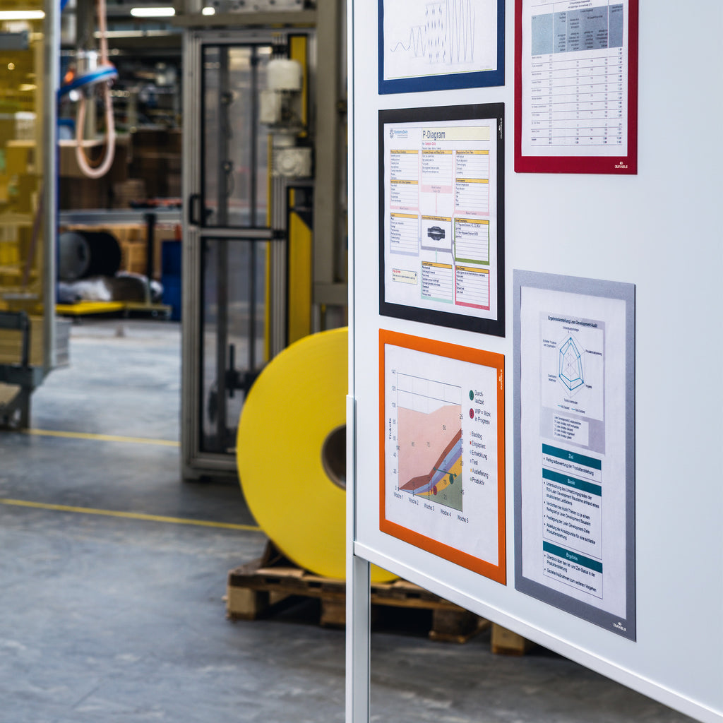 Cornice espositiva a fissaggio magnetico per esporre inserti in modo elegante ed ordinato su qualsiasi superficie metallica. L’inserto e' facilmente sostituibile sollevando e riposizionando la cornice. E' l’ideale per esporre documentazione in ambienti di lavoro quali officine, magazzini, cantieri, spogliatoi, nonche' su lavagne e bacheche magnetiche. Utilizzabile in senso orizzontale e verticale.