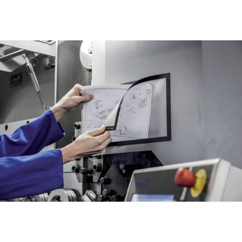 Cambia abitudine, esponi con stile!DURAFRAME® MAGNETIC PLUS è la cornice espositiva a fissaggio magnetico, ideale per esporre documenti in aree di produzione e arre sanitarie. Presentazione ordinata e professionale di avvisi e materiale informativo. L'inserto è facilmente sostituibile semplicemente sollevando il pannello magnetico. Aderisce perfettamente su superfici metalliche come lavagne magnetiche, armadietti e grigliati in metallo, macchinari di produzione. Con pannello aggiuntivo, così i documenti f.to A4 contenuti saranno protetti dalla polvere e dall'umidità. Magnete presente su tutto il perimetro posteriore della cornice. Utilizzabile sia in posizione verticale sia in orizzontale. Dimensioni esterne: 236 x 323 mm.